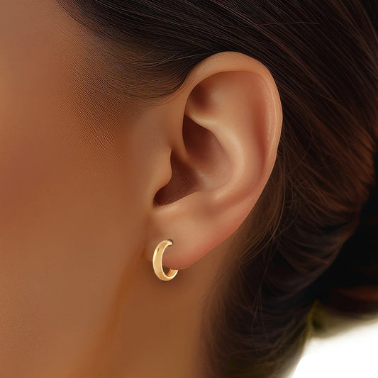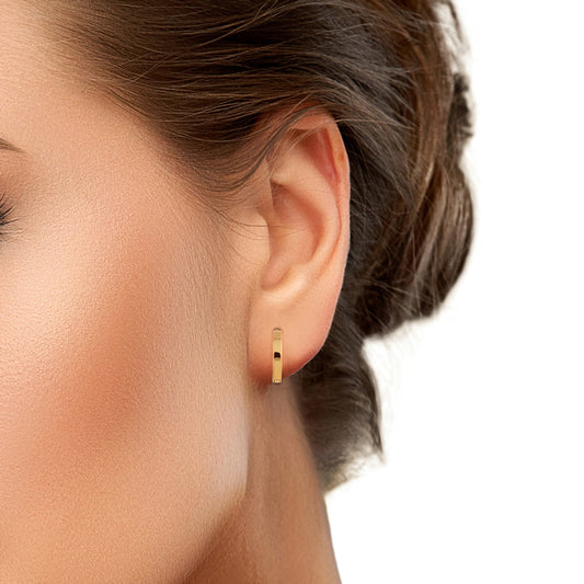 14k Gold 10mm Flat Huggie Hoop Earrings