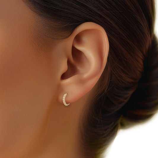 14k Yellow Gold 12.5mm Beaded Huggie Hoops Earring