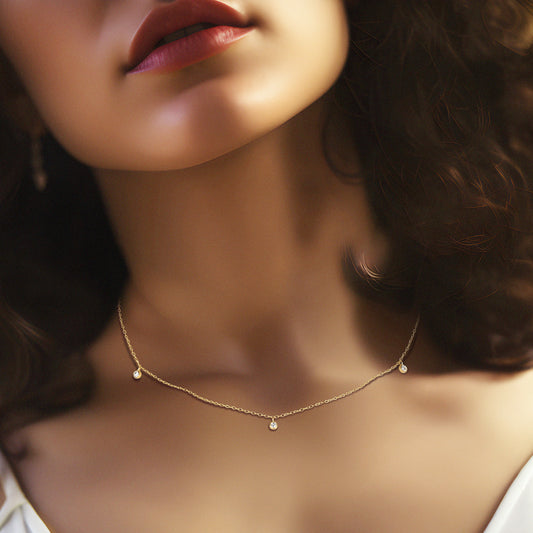 14k Yellow Gold 3 Stone Round Lab Grown Diamond Charm Necklace