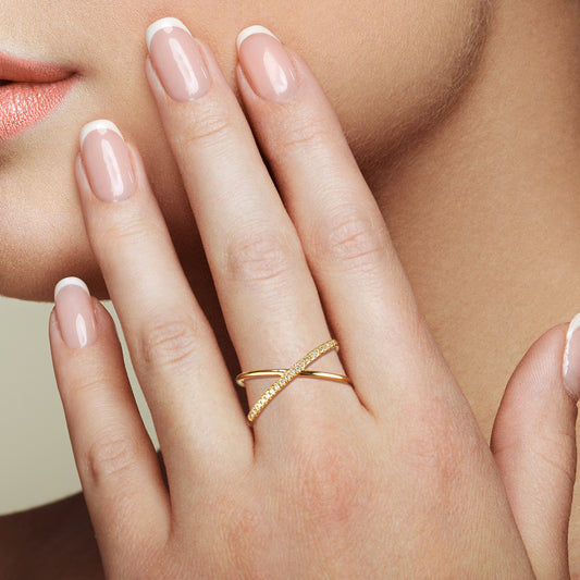 14k Yellow Gold Pavé Lab Grown Diamond X Ring